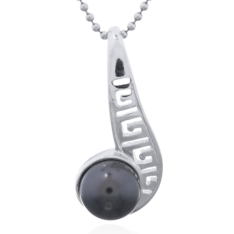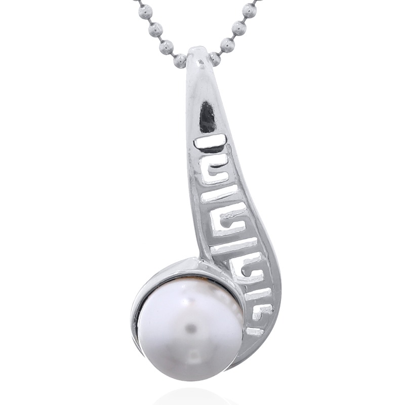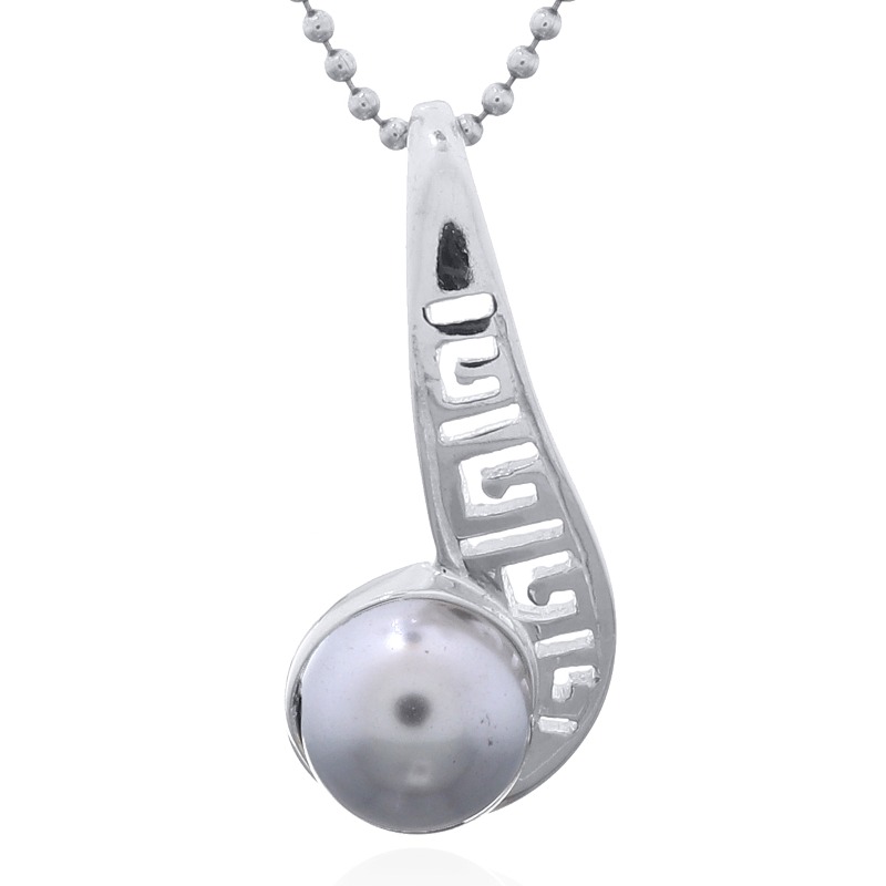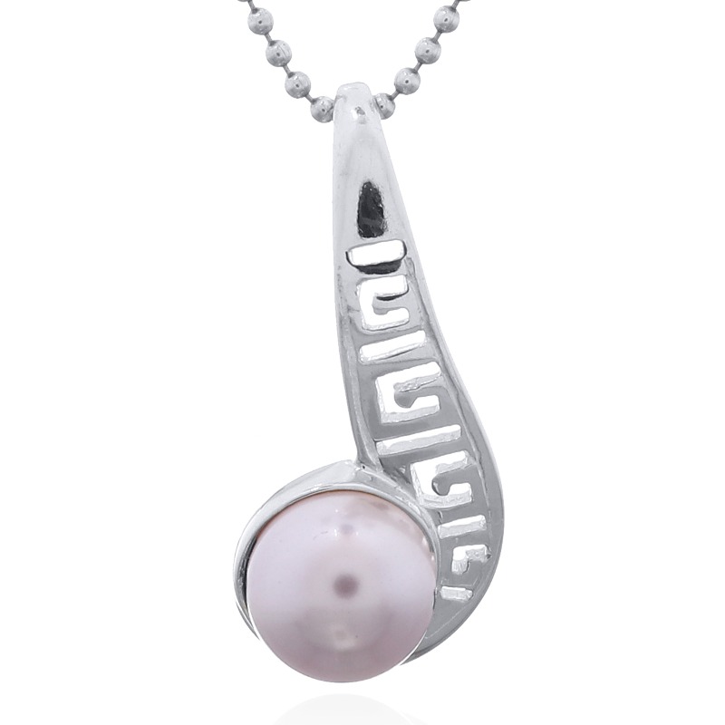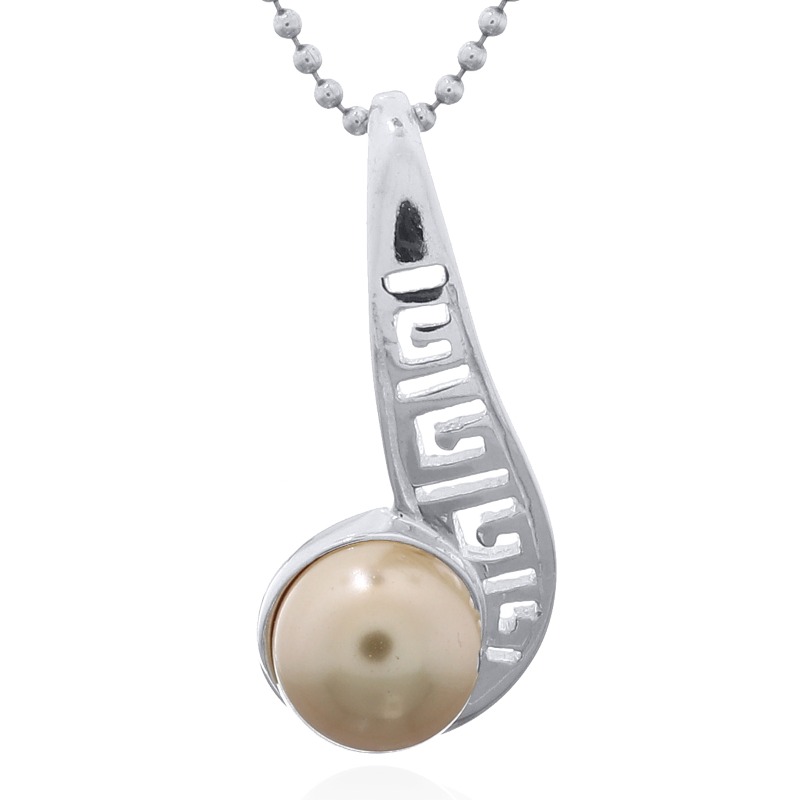 Swarovski Crystal Pearl 925 Sterling Silver pendant stages the lustrous pristine pearl gorgeously set into the curl of an Etruscan styled openwork twirl. Moving from its integrated bail downwards gaining in width gradually staging its open pattern of geometrical Etruscan styled line work the striking high polished Sterling Silver setting allures with its irresistible shine and complements the creamy luster of the Swarovski Crystal Pearl delightfully that nestles at bottom in the curl of the twirl Available in a wide range of popular pearly colors this pendant brings a sophisticated style to the neckline.