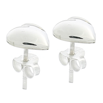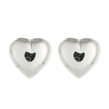 Small puffed sterling silver hearts display their polished mirror-like convex surfaces to contribute a great deal of shine to the earlobes. Shiny silver posts soldered to the flat backs of each heart equipped with butterfly type earring backs complete this tiny pieces of jewelry. Little heart stud earrings which can become a cute present for a loved one.