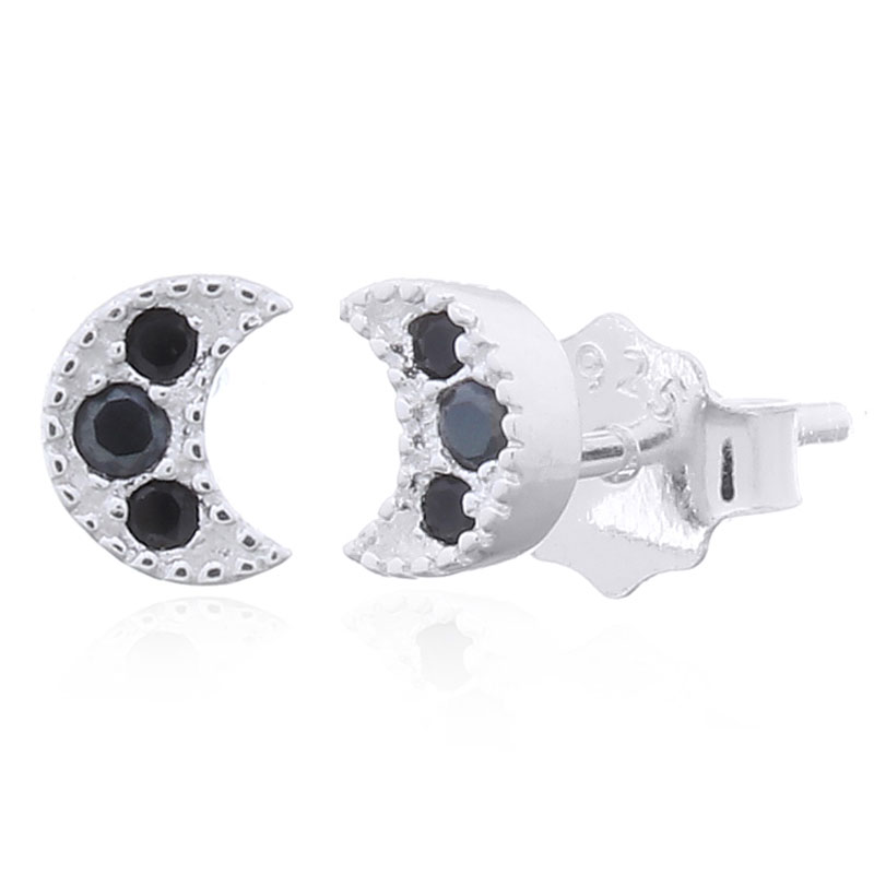 Featuring a tiny crescent moon design with black cubic zirconia, these studs add an edgy touch to any collection. Their unique look appeals to modern customers seeking distinctive accessories.