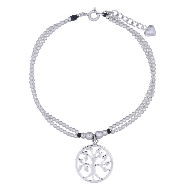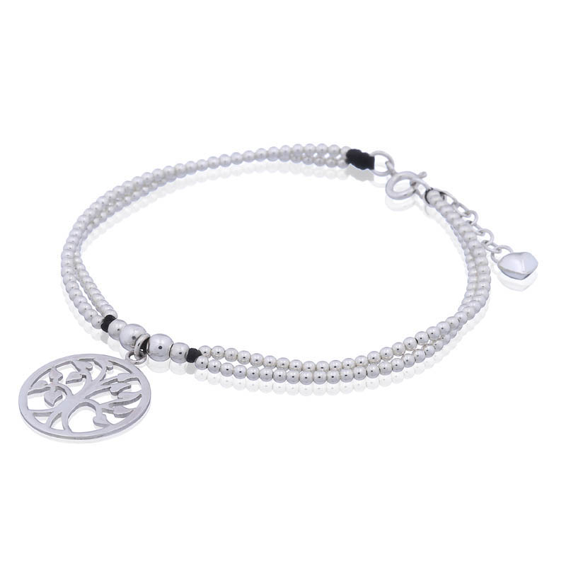 Two Rows Parallel Macrame Bracelet is embellished with 2 mm Silver round beads with a 925 tree of life charm and 2 mm extra chains.