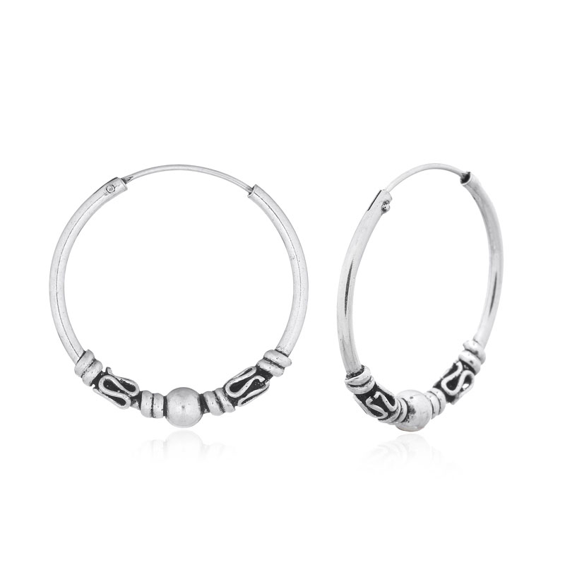 With a traditional Balinese design, these hoops make a bold statement. Measuring twenty-five mm, they offer a perfect balance of size and comfort, appealing to customers looking for distinctive pieces that enhance their individual style. A great addition to any jewelry assortment!