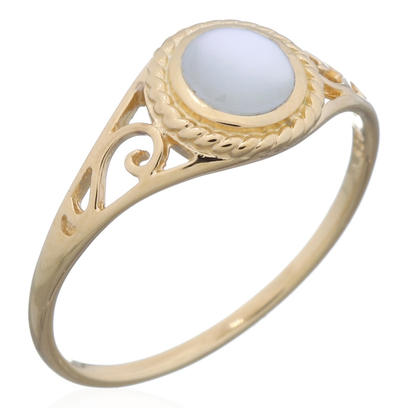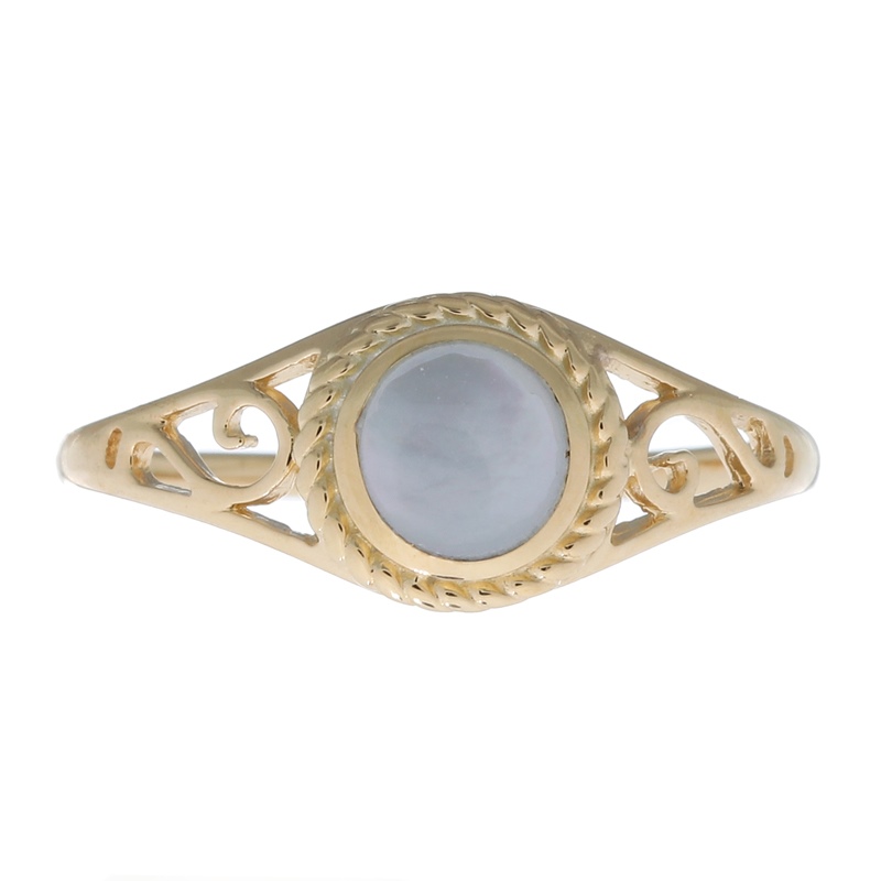This twisted round knot ring showcases the elegant simplicity of mother of pearl, adding a touch of sophistication to any ensemble. Its gold plating enhances its allure, making it an ideal choice for customers seeking timeless elegance. Elevate your collection with this refined piece!
