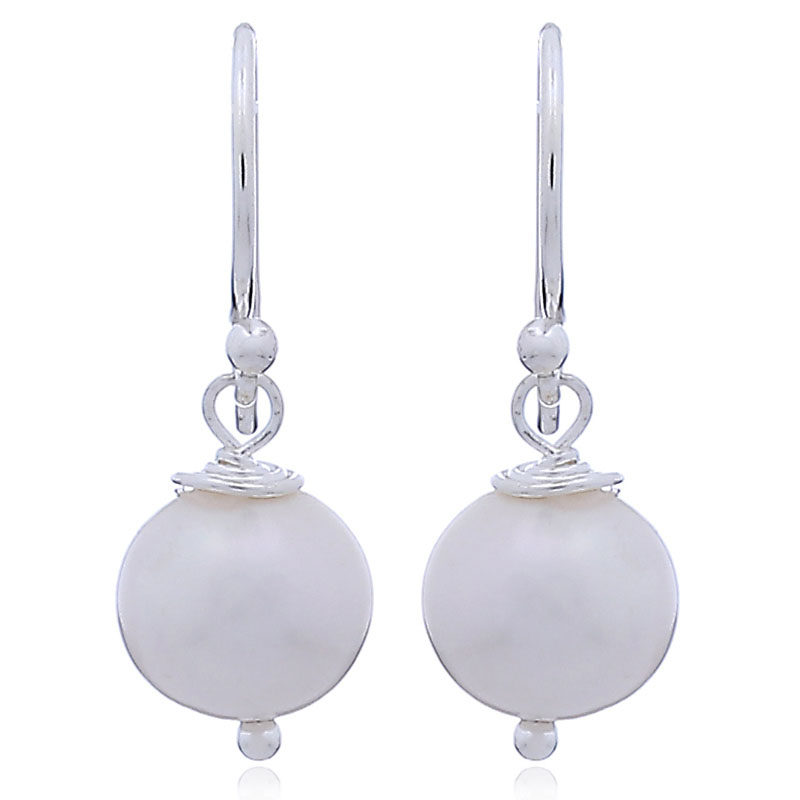 Small white fresh water pearls have a bit irregular spherical shape yet an incredibly smooth pearly surface which displays a range of iridescent colors. A tiny silver wire has been inserted in each pearl piercing it and attaching it to a Sterling Silver hook creating these feminine Planet Silver Wholesale earrings.