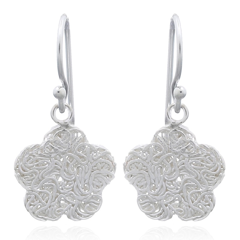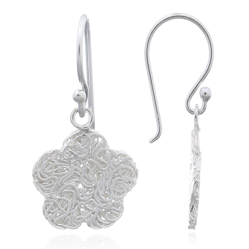 Wire stamped flower dangle earrings in 925 silver offer a delicate, handcrafted look. Perfect for adding a unique touch to your collection. Benefit from our easy shopping process and competitive prices.